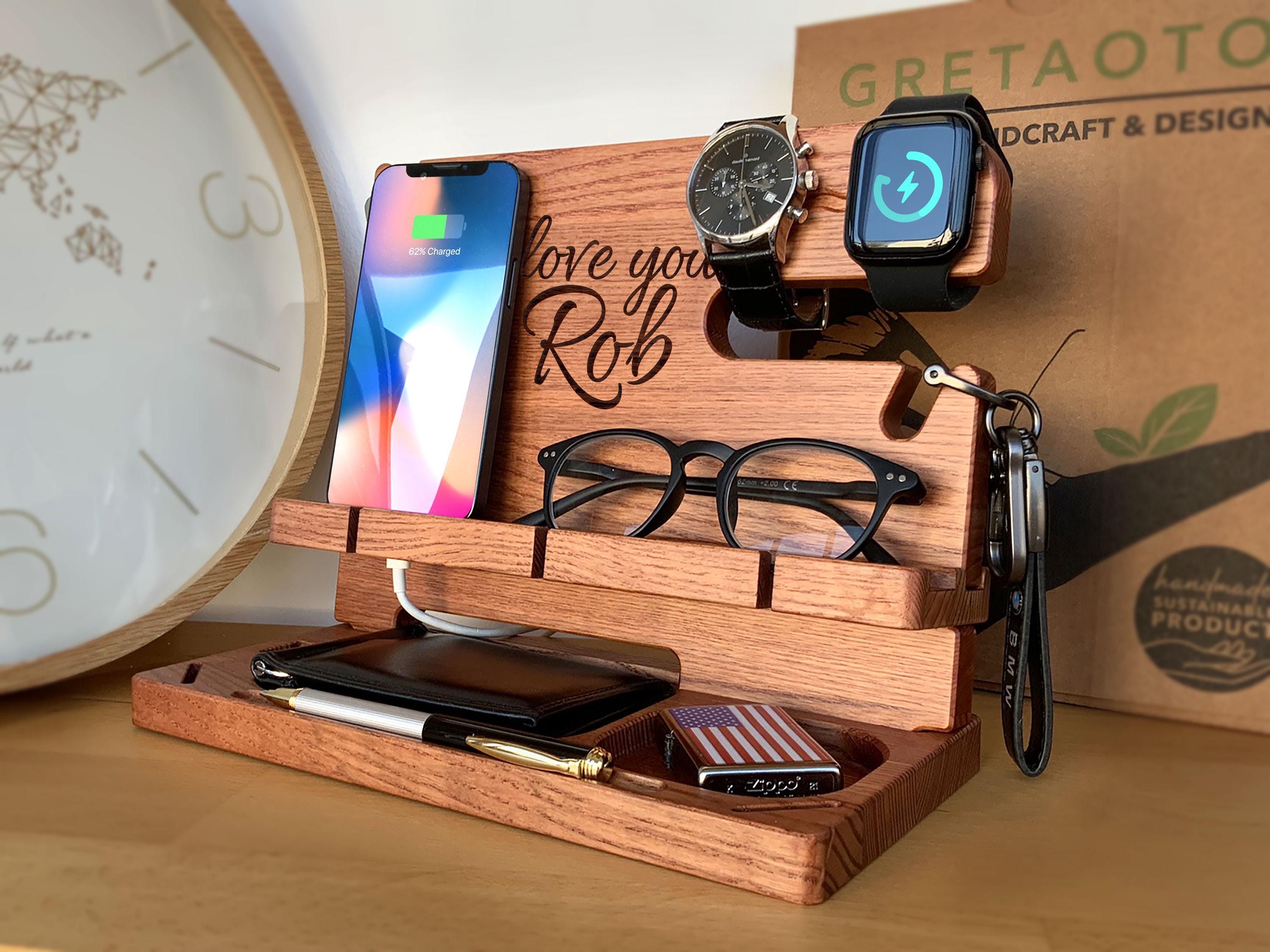 Keeping your space neat and orderly at all times is actually easy. All you need is the right storage solution to keep all your belongings in place, transforming your workspace into an organized and visually appealing area. Showing off a slim profile, our wooden docking station ensures that every inch of your desk is put to efficient use by offering designated spots for all your essentials. Compatible with the Apple Watch and all smartphones, the dock features ledges, hooks, and compartments for keeping your tablet, earphones, wallet, keys, pen, flash drives, loose change, and more!