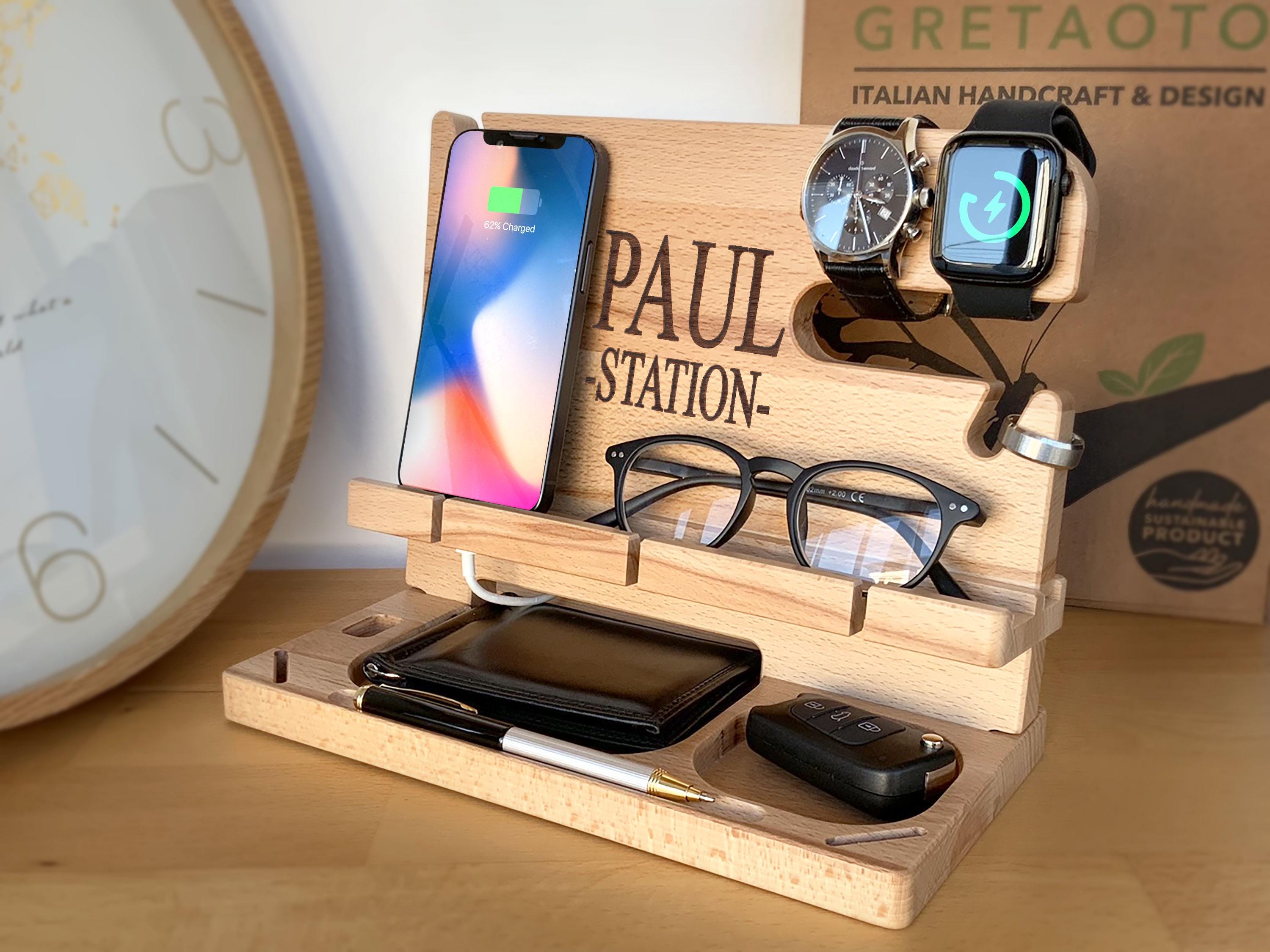 Keeping your space neat and orderly at all times is actually easy. All you need is the right storage solution to keep all your belongings in place, transforming your workspace into an organized and visually appealing area. Showing off a slim profile, our wooden docking station ensures that every inch of your desk is put to efficient use by offering designated spots for all your essentials. Compatible with the Apple Watch and all smartphones, the dock features ledges, hooks, and compartments for keeping your tablet, earphones, wallet, keys, pen, flash drives, loose change, and more!