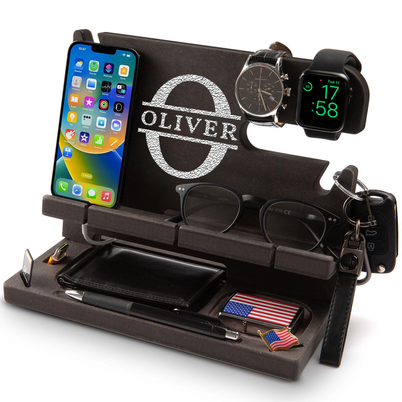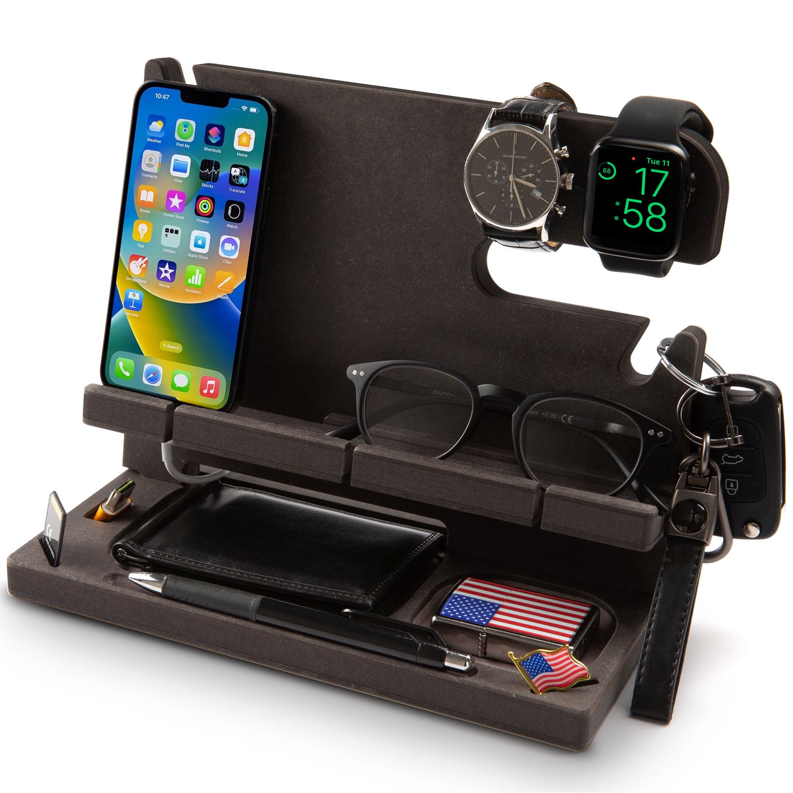 SOLID WOOD PHONE DOCKING STATION, NIGHSTAND ORGANIZER, the perfect GIFTS FOR MEN as VALENTINE'S GIFTS, BIRTHDAY GIFT FOR FRIEND, CHRISTMAS PRESENTS IDEA, FATHER'S DAY and ANNIVERSARY