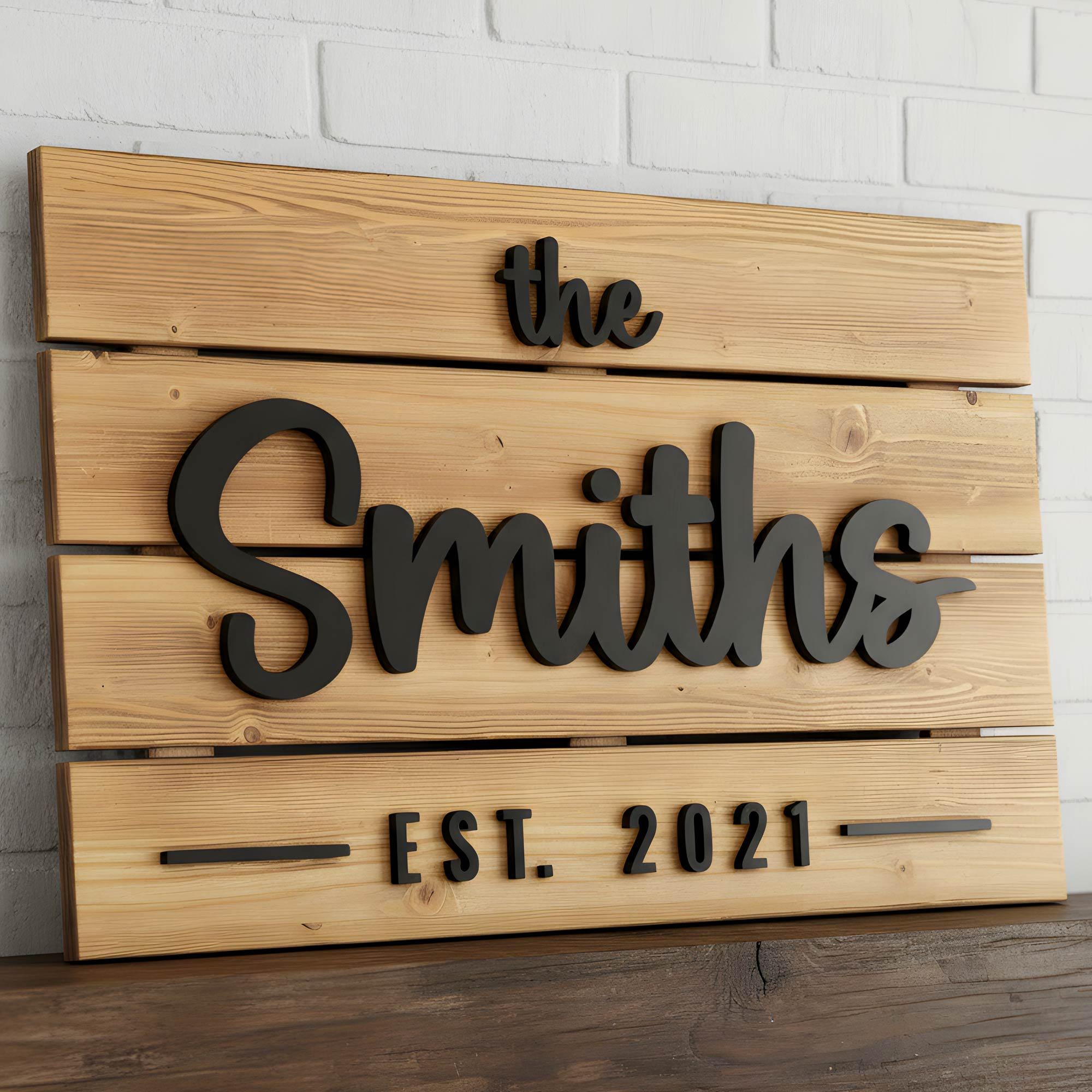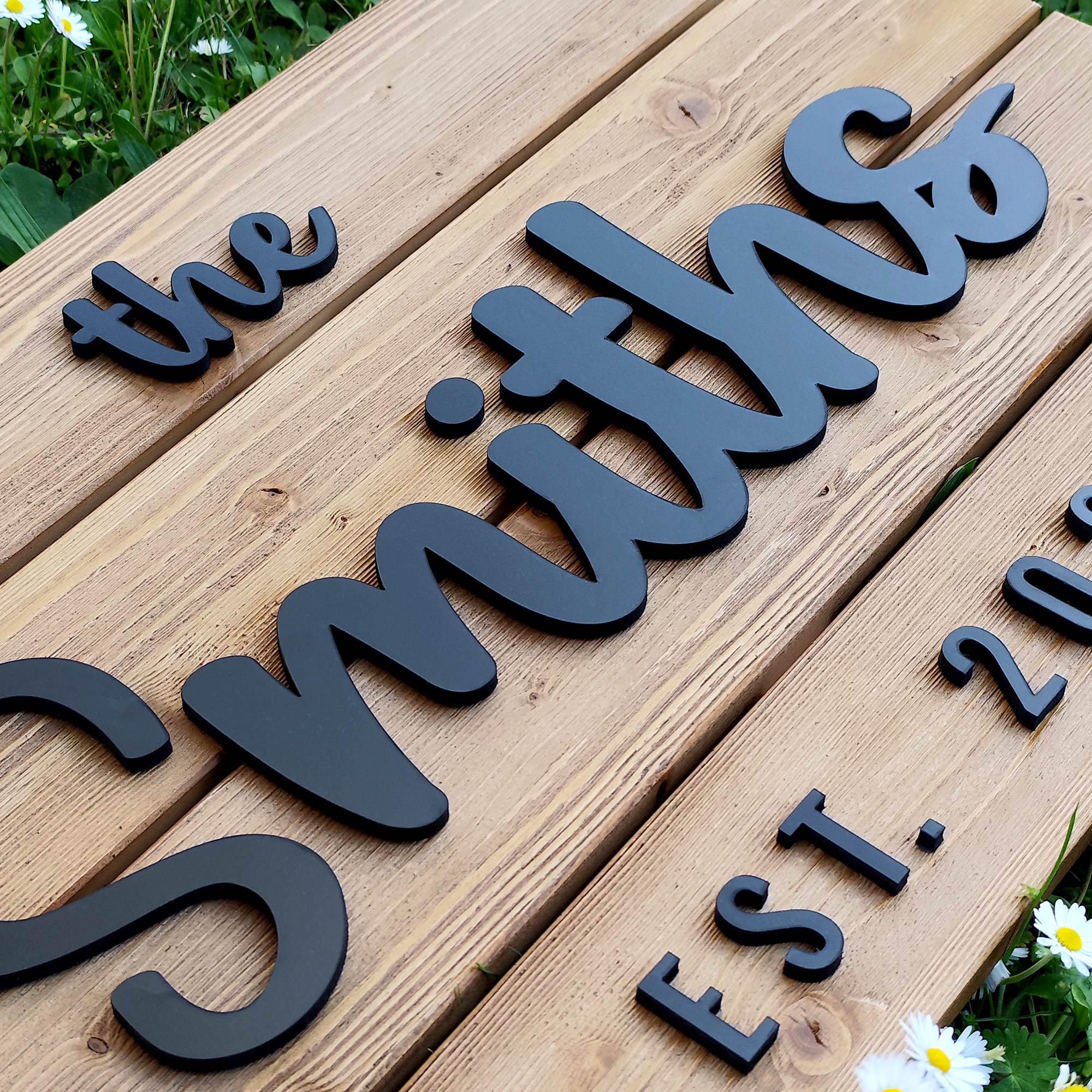 Each 3D wood sign is crafted from real wood, meaning no two signs will ever look the same. Natural grain variations make every item one of a kind. The lettering is precision-cut from MDF and mounted onto a solid wood base, creating a raised 3D effect that stands out beautifully.
